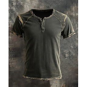 男性用 ヘンリーシャツ 半袖シャツ ティートップ 純色 ヘンリー アウトドア ストリート ボタン 衣類 日常 ハワイアン