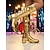 女性用グリッターポインテッドトゥスティレットヒール、リボンとパールのアンクルストラップ付き - パーティー、プロム、特別な機会にぴったりの赤いイブニングシューズ