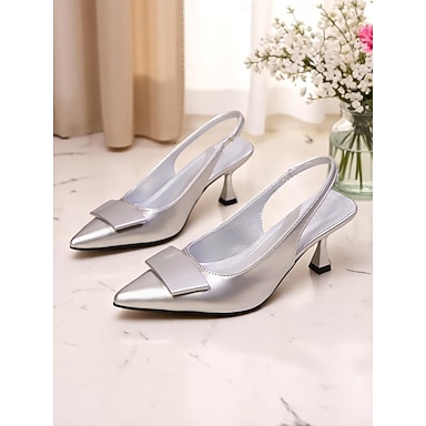 つま先が尖った女性用シルバースリングバックキトンヒール - カクテルイベントや夜のお出かけにぴったりのエレガントなパーティーシューズ