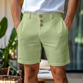 男性用 ショーツ リネンショーツ サマーショーツ ボタン ポケット まっすぐな足 平織り 履き心地よい 高通気性 ショート 家 シンプル クラシック ブラック ホワイト
