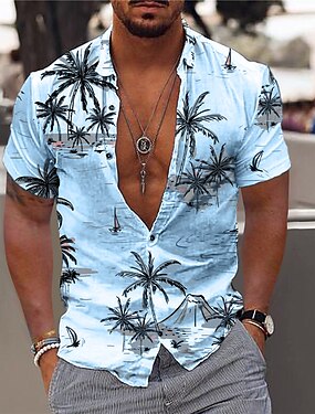 男性用 ヤシの木 ココナッツ ビーチ シャツ アロハシャツ 半袖 シャツ 折襟 トロピカル風 ファッション ハワイアン カジュアル ハワイアン 祝日 スカイブルー グリーン S M L