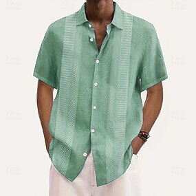 男性用 シャツ ポップオーバー シャツ サマーシャツ カジュアルシャツ ボタンアップシャツ ライトグリーン パープル カーキ色 ライトグレー ライトブルー 半袖 信仰 単色/無地 Band Collar ヘンリー バケーション ハワイアン バックル 衣類 ファッション カジュアル 快適