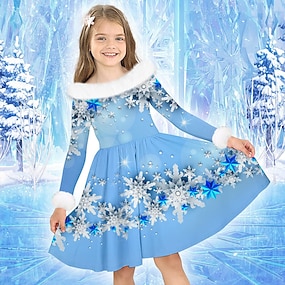 女子 3D スノーフレーク柄 ドレス 長袖 3Dプリント 秋 冬 スポーツ 日常 祝日 かわいいスタイル カジュアル 美しい 子供 3〜12年 カジュアルドレス スイングドレス A ラインドレス 膝上 ポリエステル レギュラー