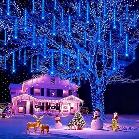 落下雨灯流星シャワーライトクリスマスライト30cm8チューブ144leds落下雨滴つららストリングライトクリスマスツリーのためのハロウィーンの装飾休日の結婚式