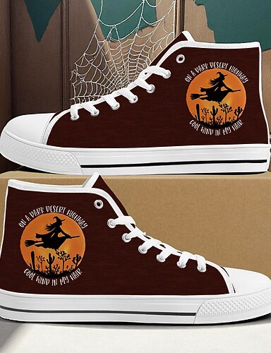 魔女のプリントが入ったレディースブルーハイカットキャンバススニーカー - 普段使いにぴったりのハロウィンパーティーシューズ