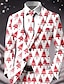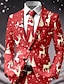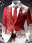 男性用 ブレザー コート クリスマス バケーション カジュアル カジュアル 普段着 カジュアル 秋冬 ポリエステル100% スノーフレーク柄 3Dプリント ボタン 保温 快適 シングルブレスト ブレザー 赤1 赤4 赤3 ライトレッド