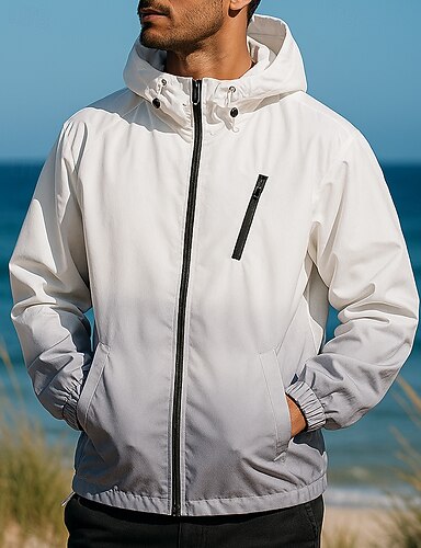 男性用 ウィンドブレーカー ソフトシェルジャケット ハイキング ジャケット アウトドア 防風 速乾性 ライトウェイト 高通気性 ハイキングの服装 ハイキングウェア 春 秋 ジャケット 登山 キャンプ / ハイキング / ケイビング ランニング 縞柄 ホワイト