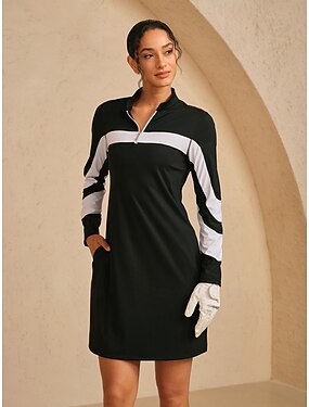 女性用 ゴルフドレス 白と黒 長袖 ドレス レディース ゴルフウェア ウェア アウトフィット ウェア アパレル