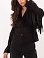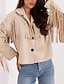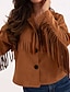 女性用 デニムジャケット 保温 快適 タッセル ボタン ヴィンテージ カジュアル 純色 バケーション ストリート カジュアル デイリーウェア ショート 折襟 レギュラー 長袖 アウターウェア ブラック キャメル アプリコット 秋 冬