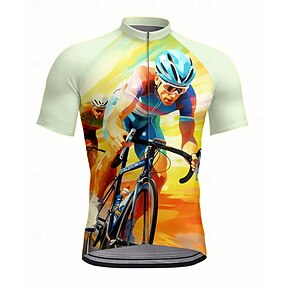男性用 サイクリングジャージー グラフィック 幾何学模様 半袖 バイク ジャージー トップス 3つのリアポケット付き UV耐性 速乾性 フロントファスナー 反射性ストリップ スポーツ イエロー 衣類