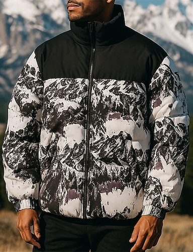 男性用 アウトドアジャケット ハイキング ジャケット パファージャケット アウトドア 防風 ウォーム ハイキングの服装 ハイキングウェア 冬 秋 ジャケット 狩猟 登山 キャンプ / ハイキング / ケイビング プリント ホワイト グリーン グレー