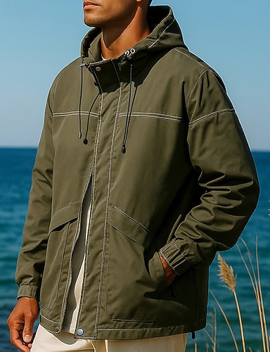 男性用 ハイキング ジャケット アウトドア 防風 軽量ジャケット ウィンドブレーカージャケット 旅行 ブラック アーミーグリーン カーキ色 ダークブルー