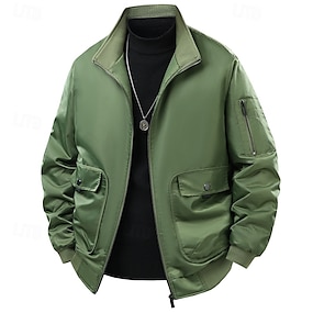 男性用 軽量ジャケット ボンバージャケット カジュアルジャケット バケーション 日常 ポケット 春 秋 平織り ファッション クラシック スタンド レギュラー ブラック アーミーグリーン ジャケット