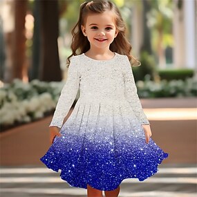 女子 3D グラフィック カートゥン スノーフレーク柄 ドレス 長袖 夏 春 バケーション 日常 祝日 美しい 甘い 子供 4〜12年 カジュアルドレス A ラインドレス 膝丈 レギュラー
