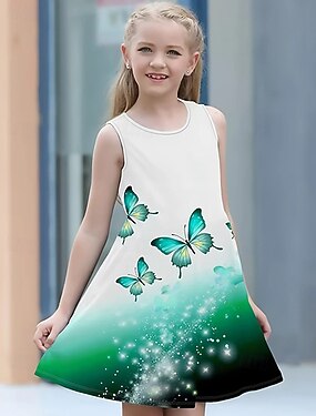 女子 3D バタフライ ドレス ノースリーブ 夏 春 バケーション 日常 祝日 プリンセス 美しい 甘い 子供 4〜12年 カジュアルドレス A ラインドレス 膝丈 レギュラー