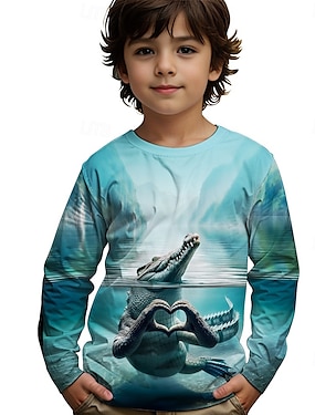 男の子 3D グラフィック 動物 クロコダイル Tシャツ Tシャツ 長袖 春 秋 ファッション ベーシック 子供 4〜12年 クルーネック アウトドア カジュアル 日常 レギュラー