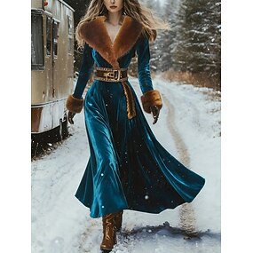 クリスマス 女性用 ミニドレス A ラインドレス カジュアル 日常 レギュラー 平織り 長袖 クルーネック ワイン ロイヤルブルー グリーン 春 秋 冬