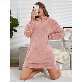 女性用 ミニドレス シースドレス 旅行度假风 カジュアル ボヘミアン 日常 スポーツ お出かけ ルーズフィット 平織り 長袖 フード付き ピンク ルビーレッド ブルー グレー 春 秋 冬