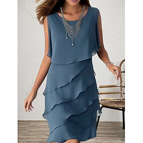 女性用 ひざ丈ドレス パーティードレス ワークドレス ウェディングゲストドレス セミフォーマルドレス ファッション 近代の 成熟した 結婚式のゲスト 祝日 カクテルパーティー レギュラー ピュアカラー ハーフスリーブ クルーネック ブルー 夏 春 秋