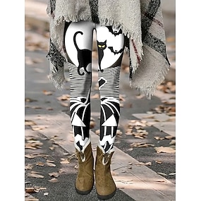 女性用 パンツ レギンス 心地よいレギンス ストリートファッション カジュアル 全長 ハイウエストPantsクリスマス 猫 弾性ウエスト プリント 通気性 快適 伸縮性あり バケーション ストリート デイリーウェア ブラック 夏 春 秋 レギュラー