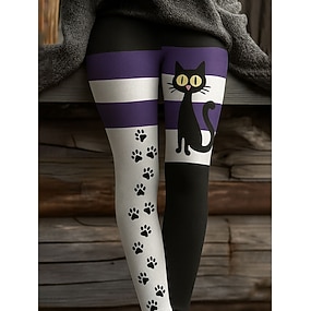 女性用 レギンス 旅行度假风 ヴィンテージ ファッション 全長 ハイウエストPantsHalloween グラフィック 猫 パッチワーク プリント 保温 ソフト 高通気性 高弾性 フォーマル アウトドア バケーション グレー ブラック アメジスト 春 秋 スリムフィット