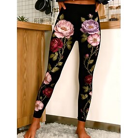 女性用 レギンス 心地よいレギンス 旅行度假风 ヴィンテージ カジュアル 全長 ハイウエスト グラフィック ローズ プリント 履き心地よい 快適 高弾性 カジュアル 日常 バケーション ブラック 春 秋 タイト