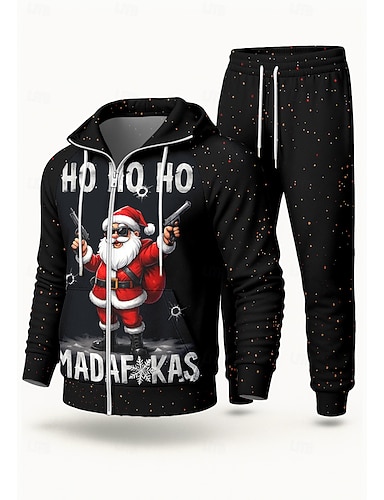 クリスマス 男性用 パーカー トラックスーツ 2ピーストラックスーツ ドローストリング ジッパーを閉める レタード スーツウェア 秋 ブラック ボウケーション 屋外 トラベル ライトウェイト ファッション 長袖 スポーツ アクティブウェア 伸縮性あり レギュラー