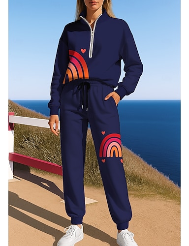 女性用 トラックスーツ スウェットスーツ ジョギングスーツ ドローストリング ジッパー 幾何学模様 ジャケット & スウェットパンツ 運動服セット 春 ダークネービー カジュアル いい結果になる 屋外 ソフト バギー 長袖 スポーツ アクティブウェア マイクロエラスティック ルーズフィット
