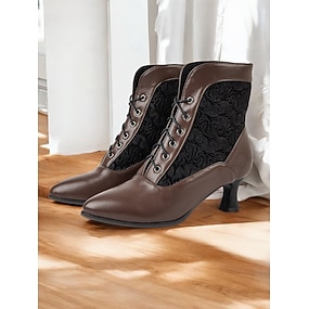 女性用 1920 年代の黒のビクトリア朝風レースアップ アンクルブーツ - 歴史的な衣装、舞台公演、またはヴィンテージの秋服にぴったりのレトロなキトンヒールのレザーシューズ