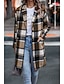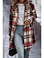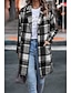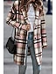 女性用 冬物コート 冬物ジャケット 快適 高通気性 ポケット プリント カジュアル チェック バケーション ストリート カジュアル デイリーウェア シングルブレスト ロング 折襟 レギュラー 長袖 アウターウェア ブラックとホワイト ピンク ルビーレッド 春 秋