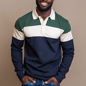 男性用 縞柄 ラグビーポロ 長袖 ポロシャツ 襟付きシャツ カジュアル アウトドア アスレイジャー 3Dプリント 春 秋 冬 ブルー ブラウン グリーン