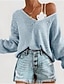 女性用 ニット プルオーバー 日常 スタイリッシュ カジュアル 純色 リブ Vネック ニット 長袖 レギュラートップス ニット 日常 祝日 お出かけ ピンク ブルー 秋 冬