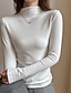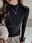 女性用 ドレッシーなトップス タイトトップス 純色 平織り エレガント レディース スタイリッシュ 長袖 ハイネック レギュラートップス ワーク 日常 お出かけ チュニック ドレープ ブラック ホワイト ライトグレー アプリコット グレー 秋 冬