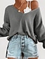 女性用 ニット スタイリッシュ 純色 リブ ワンショルダー コールドショルダー 長袖 レギュラートップス ニット 日常 ホワイト ピンク 春 秋