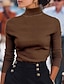 女性用 ニット エレガント ヴィンテージ 日常 純色 タートルネック ボタン 長袖 レギュラートップス ニット 日常 ダークブルー ベージュ 秋 冬