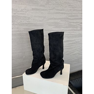 レディーススエードニーハイブーツ、尖ったつま先のスティレットヒールファッションフットウェア、シックなストリートスタイルの冬のパーティー &カジュアルな服装