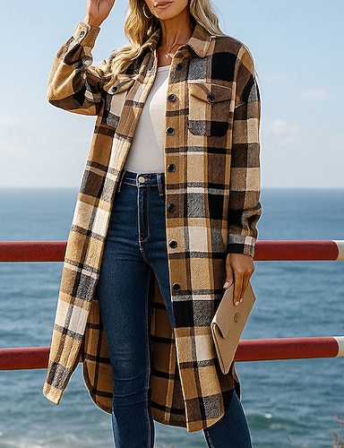 女性用 シングルブレストトレンチコート ポケット付き 長袖 トップス アスレイジャー チェック 格子柄 防風 ウォーム ハイキング トラベル バケーション スポーツウェア アクティブウェア ブラック ルビーレッド グリーン