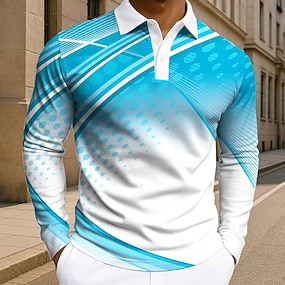 男性用 幾何学的な ライン ポロ 長袖 ポロシャツ ラペル ビジネスカジュアル アスレイジャー デイリーウェア 3Dプリント ボタン 春 秋 冬 レイクブルー ダークピンク ブルー