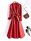 女性用 ミディドレス シャツドレス A ラインドレス エレガント フォーマル ワーク レギュラー 平織り ハーフスリーブ シャツカラー ルビーレッド ロイヤルブルー アプリコット 夏