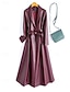 女性用 ロングドレス マキシドレス シャツドレス カジュアルドレス スタイリッシュ カジュアル バケーション 日常 レギュラー 平織り 長袖 シャツカラー ピンク グリーン 夏 春