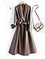 女性用 レザージャケット 冬物コート ジャケット 保温 快適 前で結ぶ ファッション 平織り バケーション ストリート カジュアル お出かけ レギュラー 折襟 レギュラー 長袖 アウターウェア ブラウン 秋 冬