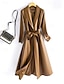 女性用 冬物ジャケット コート 保温 快適 前で結ぶ ファッション 近代の カジュアル 平織り お出かけ 週末 カーディガン レギュラー Vネック レギュラー 長袖 アウターウェア ブラック ベージュ 冬