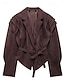 女性用 ブラウス イブニングトップス エレガント メタリック スタイリッシュ 七分袖 Vネック レギュラートップス 結婚式のゲスト パーティー セミフォーマル 前で結ぶ ブラウン 春、夏、秋、冬