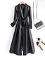 女性用 マキシドレス 黒いドレス シャツドレス カジュアルドレス 二次会ドレス / カクテルドレス スタイリッシュ カジュアル バケーション 日常 レギュラー 平織り 長袖 シャツカラー ブラック 夏 春
