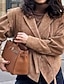 女性用 レザージャケット 快適 前で結ぶ カジュアル 平織り バケーション カジュアル デイリーウェア お出かけ ショート レギュラー 折襟 レギュラー 長袖 アウターウェア カーキ色 コーヒー 秋 冬