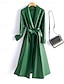 女性用 ブラウス イブニングトップス エレガント メタリック スタイリッシュ 七分袖 Vネック レギュラートップス 結婚式のゲスト パーティー セミフォーマル 前で結ぶ エメラルドグリーン 春、夏、秋、冬