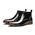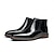 光沢のあるメンズブラック本革スリッポンブーツ。結婚式、パーティー、ビジネスシーンに最適です。