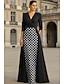 タイト/コラム アンクル丈 カクテルドレス 卒業ドレス イブニングドレス ボールガウン エレガント カラーブロック シルキー 長袖 Vネック フォーマル 結婚式 サテン スパンコール とともに グリッター素材 スパンコール 2025