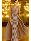 トランペット/マーメイド スイープ/ブラシトレーン イブニングドレス オーバースカート付きボールガウン フォーマルドレス エレガント ノースリーブ Vネック フォーマル クリスマス シャンパンマザーオブブライドドレス サテン とともに フェザー 2025