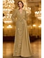 Aラインイブニングガウン エレガントドレス フォーマル フロア丈 ロングスリーブ Vネック シャンパン 花嫁の母のドレス スパンコール付き フェザーグリッター